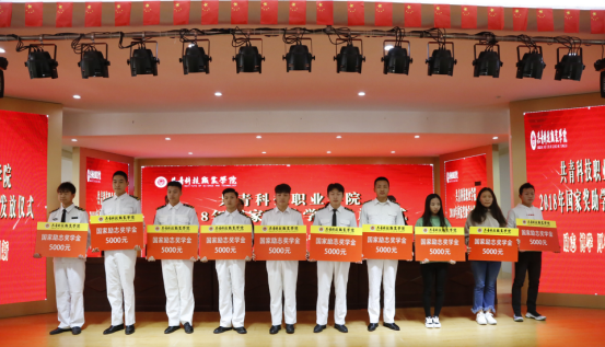 仪式最后,扶名福校长发表讲话,他对获得国家奖、助学金的同学表示热烈的祝贺,对参与各级评审的老师和专家表示衷心的感谢。扶校长指出,根据国家和省有关相关政策,我校按照三级评审制度,严格执行国家“绝不让一个学生因贫困而辍学”的宗旨,今年我校评选出了国家奖学金3名、国家励志奖学金181名、国家助学金1313名,保质保量地完成了这项民生工程。他强调,国家设立奖、助学金制度,是对品学兼优的学生的鼓励,对家庭经济困难的学生的关怀。希望同学们要倍加珍惜国家、社会和学校的关爱,合理使用好奖学金和助学金,把钱用在关键之处,不能挥霍浪费;希望同学们刻苦勤奋学习,提高学习效率,掌握更多技能,成为德、智、体、美、劳全面发展的人,真正实践国家设立奖助学金的意义;希望同学们要常怀感恩之心,从“得到”升华到“给予”,用感恩的心回报社会回报他人,积极参加社会公益活动,为他人提供力所能及的帮助。扶校长最后引用习近平总书记在党的十九大报告中对青年的要求勉励大家:“青年兴则国家兴,青年强则国家强。青年一代有理想、有本领、有担当,国家就有前途,民族就有希望。中华民族伟大复兴的中国梦终将在一代代青年的接力奋斗中变为现实。广大青年要坚定理想信念,志存高远,脚踏实地,勇做时代的弄潮儿,在实现中国梦的生动实践中放飞青春梦想,在为人民利益的不懈奋斗中书写人生华章!”