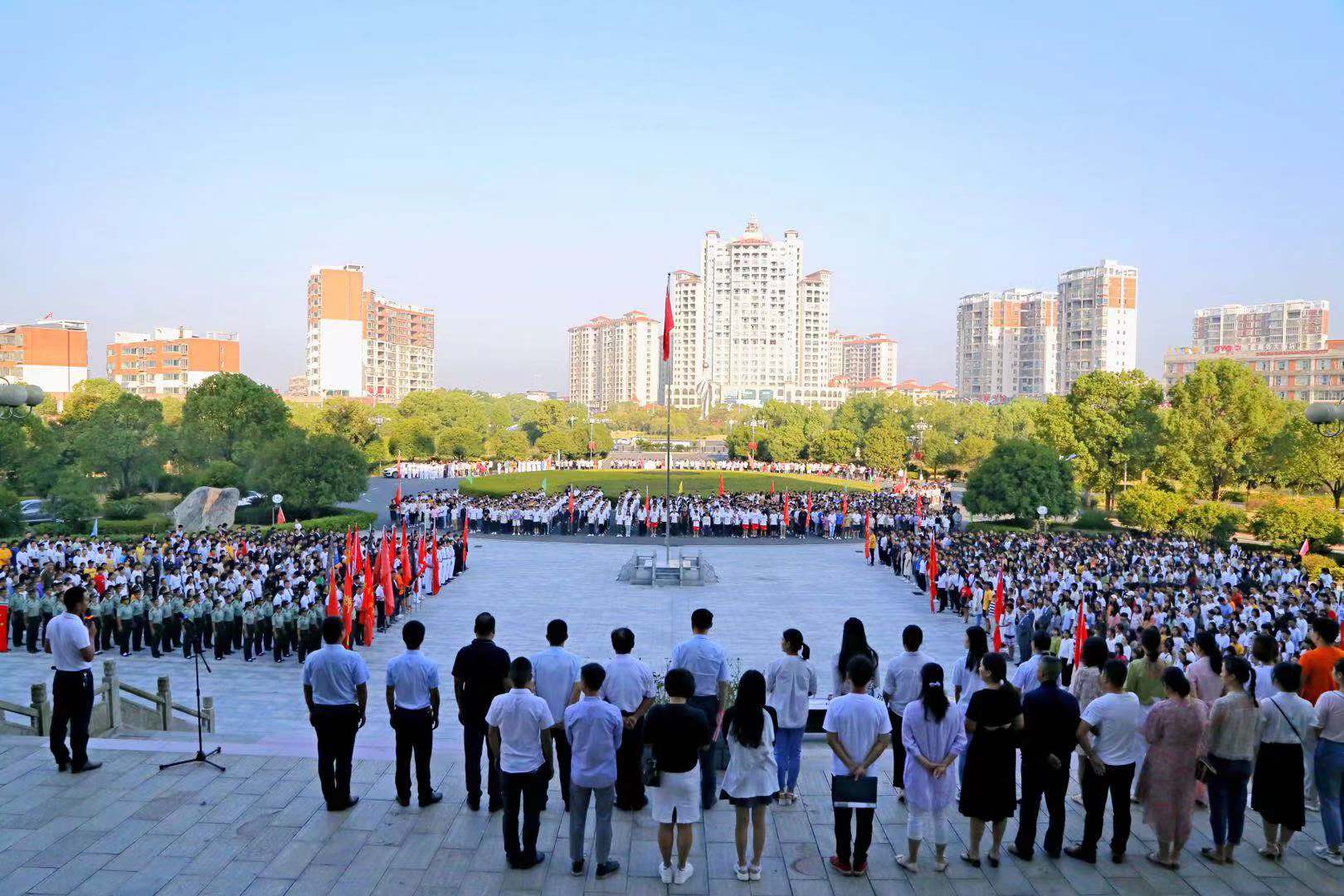 9月30日清晨,我校全体师生齐聚航天广场,举行迎国庆升国旗仪式。校党委书记、督导专员王晓阳,党委副书记、副校长周声柱,校党委委员、统战部部长杨其龙,学工处处长王刚和各二级学院辅导员等参加升旗仪式。