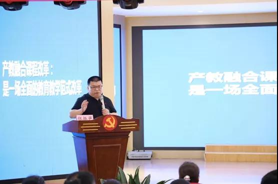 应用型课程建设联盟常务副理事长曹勇安教授围绕《职教类中高本课程开发的原则、方法和评价》进行了专题讲演。他在课上提出产教融合课程改革是一场全面的教育教学范式改革,并对产教融合的优势以及改革的重要性作出了详细讲解。向在场教师讲授了高本课程开发的原则,以及从教师的角度讲解了如何开发课程的方法。并解读了“产教融合”重要文件精神。曹勇安教授语言风趣幽默,内容丰富详实,把客观详细的分析和实际案例相结合,在场教师心生共鸣。对我校深化产教融合课程改革具有重要的意义。