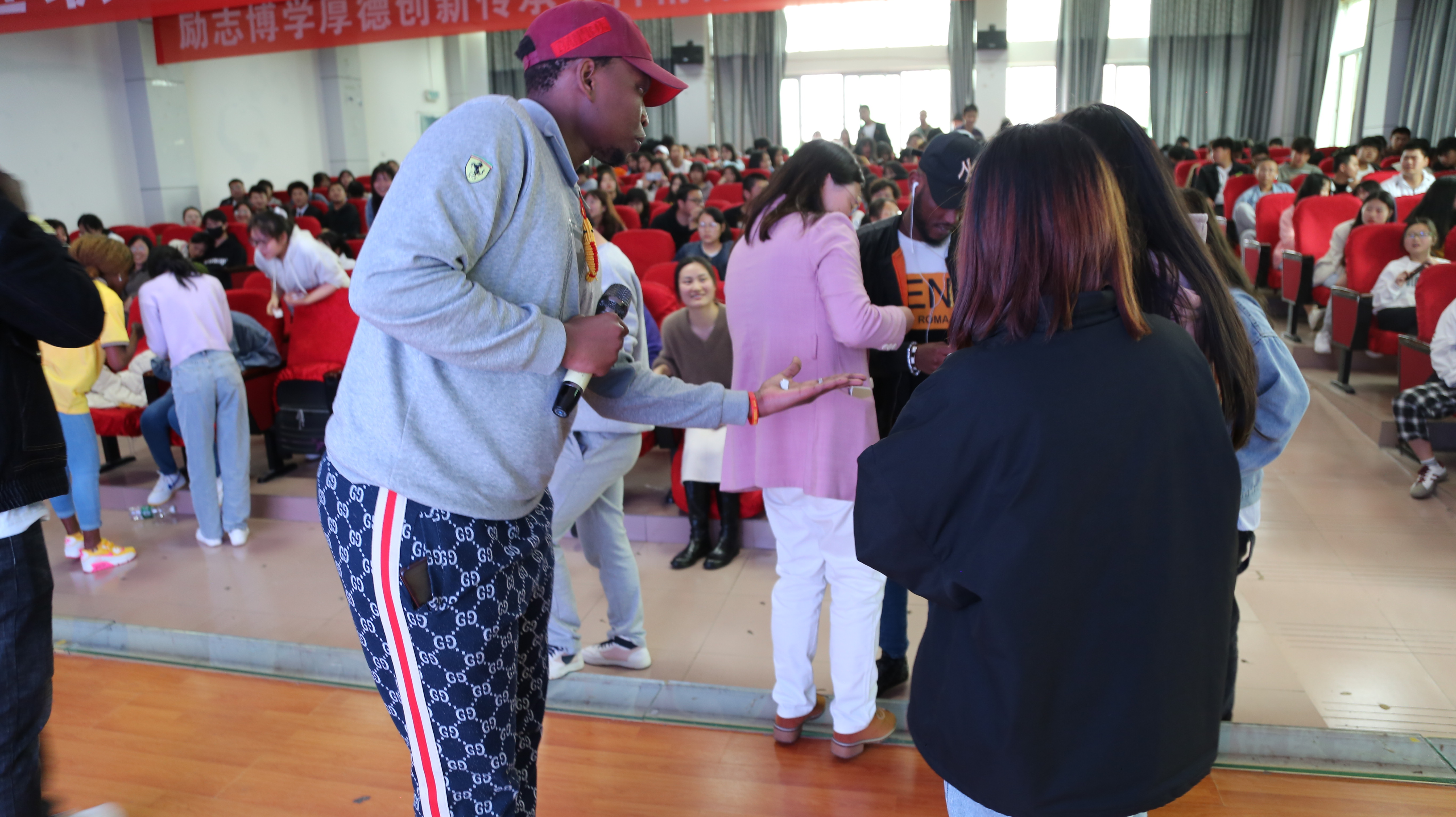英语交流活动下午正点举行,活动第一环节是学生们自我介绍;第二环节是节目展示:唱歌表演、诗词朗诵、求职应聘、回答问题及做游戏;第三环节是互相交流,同学们热情高涨,纷纷互相添加微信,老师们也彼此交流了学生英语竞赛的经验。