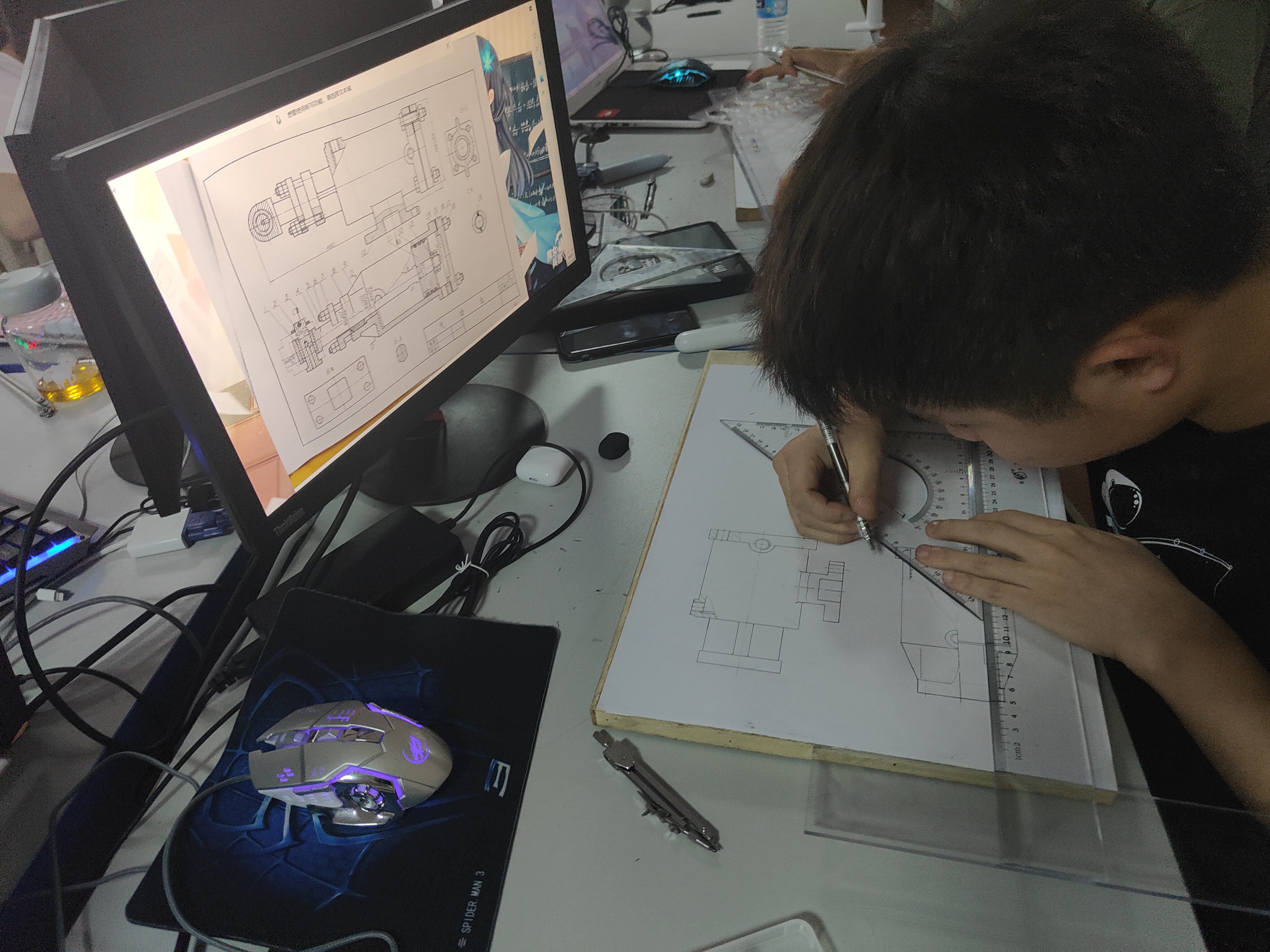 本次大赛由机电工程学院组队参赛。赛前,教师精心指导、集中训练,为参赛人员进一步夯实理论基础,提升专业素养,确保参赛选手全部获奖。一队荣获团体一等奖、二队荣获团体二等奖;建模竞赛中学生何志伟、苏烈凯、易伟来、杨意林、黄旗斌、刘智诚、宋晓荣获一等奖,学生李志广、温平、范凯伦、黄飞彬、陈贵贤荣获二等奖,学生何络、周宏亮、胡茂松、晋家军荣获三等奖;尺规竞赛中学生苏烈凯荣获一等奖,学生梁怡、黄飞彬、刘智诚、乐钦锋、范凯伦荣获二等奖,学生晋家军、汪海桃、周宏亮、李志广、杨意林、宋晓、何志伟、黄旗斌、陈贵贤、温平、易伟来、何络、陈家诺、胡茂松荣获三等奖。