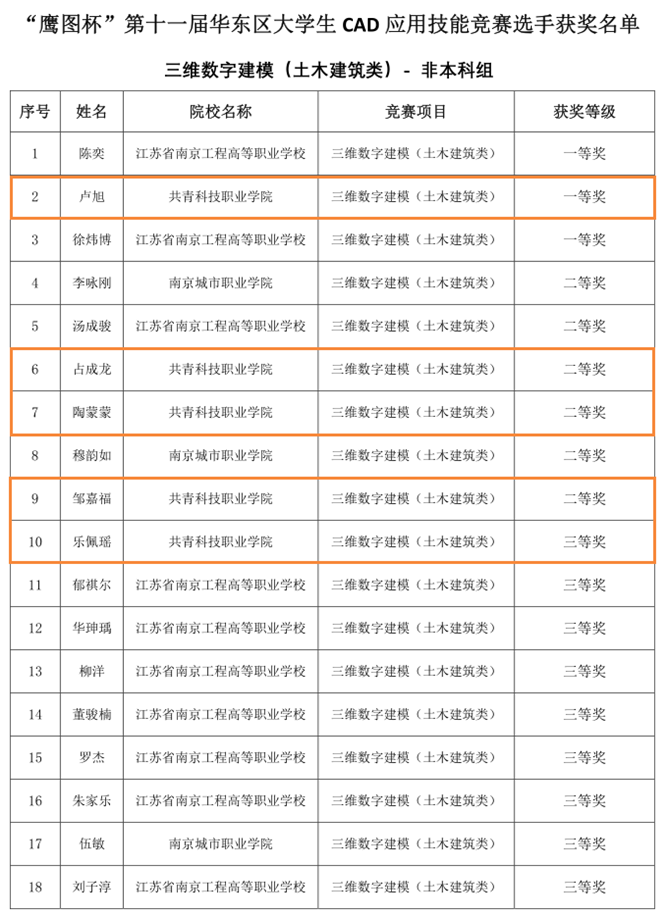 喜报:我校建筑工程学院学生在“‘鹰图杯’第十一届华东区大学生 CAD应用技能竞赛”中荣获佳绩