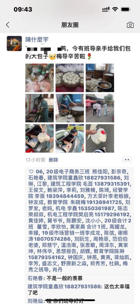 这是梅秀之老师第二次为学生做爱心早餐了。甘为孺子育英才,克勤心力细心裁。梅秀之老师这一举动让学生在封校期间感受到了妈妈的爱,更是在这疫情之下,感受到了温暖。辅导员,一个平凡的称谓,一生不平凡的使命。梅秀之老师在最平凡的岗位上做出了无私的奉献,用实际行动守护者疫情防控的“责任田”,诠释了辅导员的责任担当,谱写了大爱无言的战“疫”之歌。