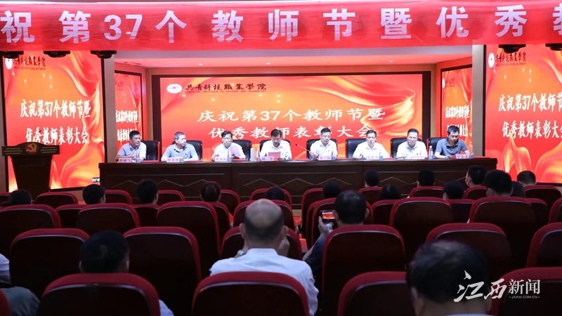 江西新闻客户端讯 9月10日上午,共青科技职业学院召开了庆祝第37个教师节暨表彰大会,党委书记、督导专员黄柯出席大会并讲话,校长姚电,副校长彭健飞、周声柱、刘金华、胡忠阳、钟发根、陈隆波,各单位副处级及以上干部、新聘教师、各教学单位青年教师出席表彰大会。