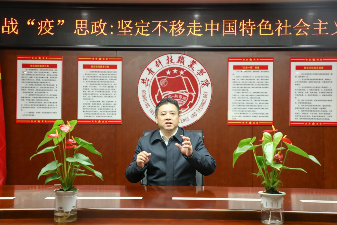 为进一步加强校园疫情防控期间的学生思想政治教育工作,引导广大同学正确认识疫情形势,树立战胜疫情的信心。3月28日,共青科技职业学院党委书记黄柯在抖音以《坚定不移走中国特色社会主义道路》为题,为全校教职工、学生进行线上授课,累计观看人数4000余人,点赞量12.2万。