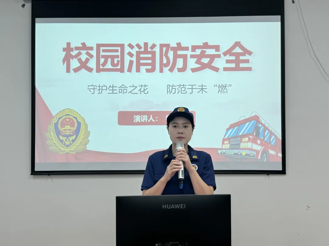 杨梅以《守护生命之花 防范于未“燃”》为题,从引言、火灾基本知识、校园火灾原因分析、校园防火措施、火灾应急处理、校园防火宣传与教育、总结,为全校师生讲述了一堂生动的消防知识课。为了让师生们更加直观地了解消防设备的使用方法,杨梅还特意带来了灭火器和消防栓等实物,现场演示了如何正确使用这些设备。通过多种形式的宣传教育,让全校师生们全面了解消防安全知识,掌握基本的防火、灭火和逃生技能。