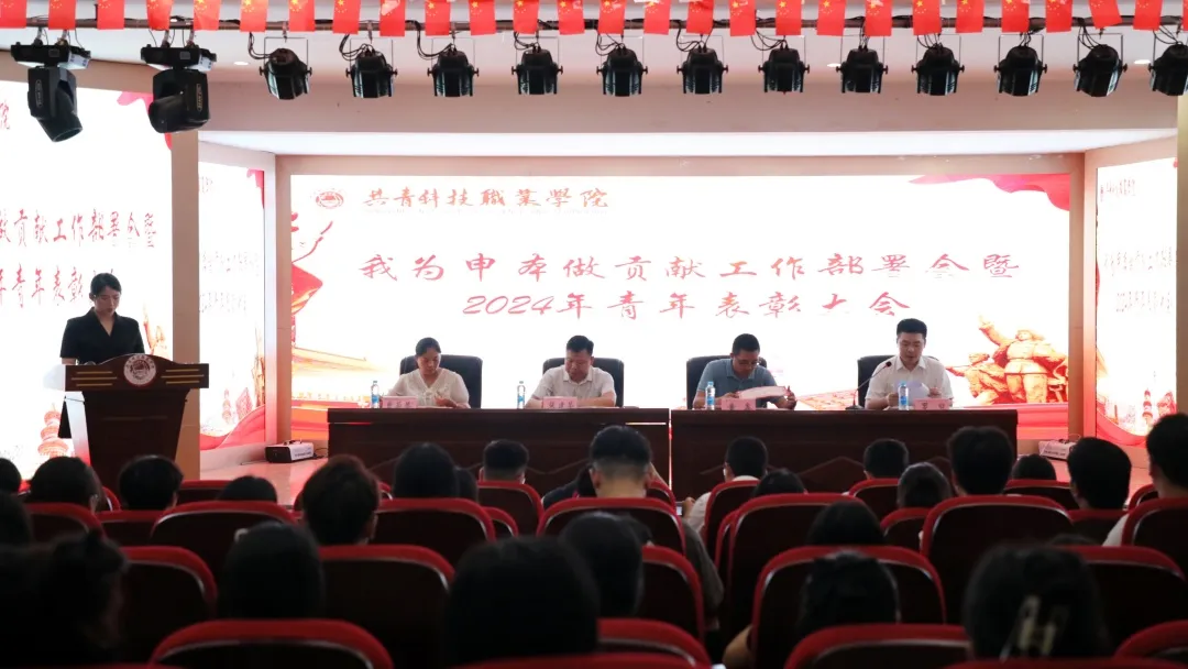 为深入学习贯彻习近平总书记关于青年工作的重要思想,激励广大青年以受到表彰的集体和个人为榜样,坚定不移听党话、跟党走,争做有理想、敢担当、能吃苦、肯奋斗的新时代好青年,在为中国式现代化挺膺担当中展现青春作为、彰显青春风采、贡献青春力量,日前,我校团委举办共青科技职业学院“我为申本做贡献”工作部署会暨2024年青年表彰大会。党委副书记、副校长张建荣出席会议并讲话。校学工处、团委负责人,各二级学院党支部(副)书记及师生代表,共计200余人参加大会。