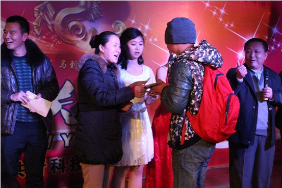晚会现场还组织了活泼有趣的游戏和抽奖活动,学院领导参与了抽奖活动,向每位师生送上新年的祝福。