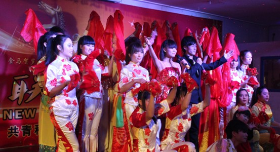 2013年12月28日晚,共青科技职业学院迎新年文艺晚会在B栋一楼多功能厅举行,全院师生代表欢聚一堂,载歌载舞,迎接新年的到来。校领导邱敏蓉、张华东、胡忠阳、陶明松、郭子洋,各系、处室负责人及师生代表500余人出席了晚会。晚会伊始,理事长邱敏蓉博士向全院师生致新年贺词:“新年到来之际,我代表共青科技职业学院,向全校师生致以诚挚的新年祝贺,祝愿大家在新的一年里身体健康、家庭幸福,工作顺利、学习进步、万事如意!”