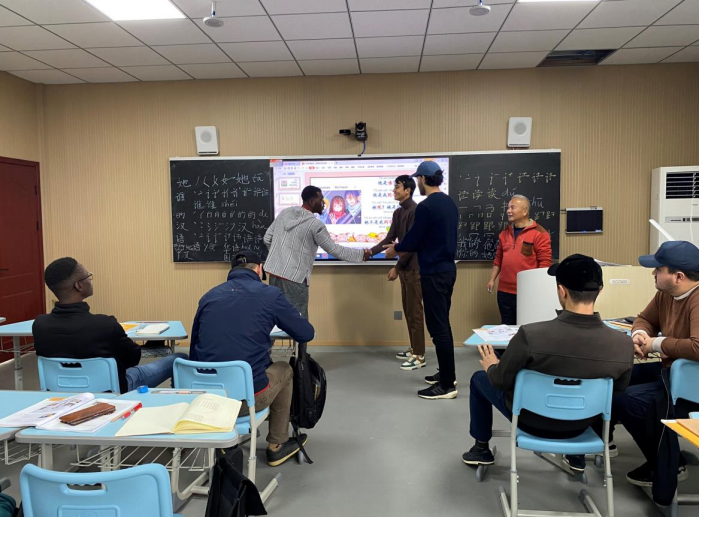 我现在代表我们 2014 年国际学生的班级对于周博士 的初级汉语综合 1 课程做报告. 周老师的课总是给我们的课堂代来活力.他非常热情地 教我们. 他回答我们的问题也很清楚. 在周博士的课堂, 我感受到了温暖和兴奋. 而今我们都可以用基本的句 子来交流的, 并且我们我们越来越进步了. 下面的就是 周老师的课的照片: I would like to represent the International Students Class in 2014 report about the Dr. Zhou’s Elementary Chinese Comprehensive 1 course. Mr. Zhou’s class is always bringing excitement to us. He guides us very enthusiastically and answers our questions clearly. I feel the warm and exciting atmosphere in his class. At the present, we can communicate basis sentences with each other, and more improve with each lesson. Below are some pictures of our class in his lesson: