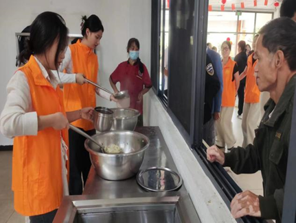 在包馄饨环节更是热闹非凡,志愿者们围在一起,包馄饨的欢声笑语回荡在敬老院上空,有的切菜,有的负责包馅。不一会儿,形态各异的馄饨就摆满了一盘又一盘,每一颗馄饨都承载着同学们对老人的深深祝福。馄饨出锅,香气扑鼻,老人们品尝着这份特别的佳肴,脸上洋溢着幸福的笑容,小小的馄饨,包进去的是“敬老情”,吃出来的是“幸福感”。