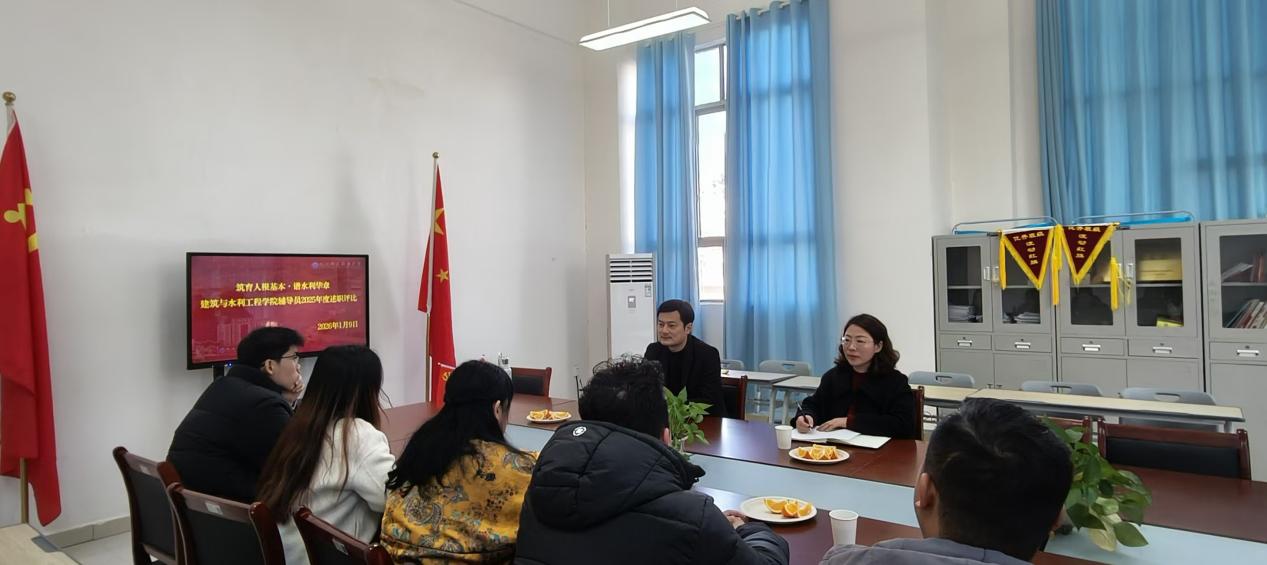 2026年1月9日上午10:00,我院在102党员活动室召开2025年度辅导员工作述职会,党支部书记张梅娟、副院长钟良伟出席会议,全体辅导员参加此次述职评议。