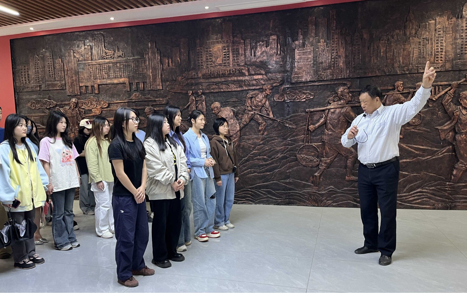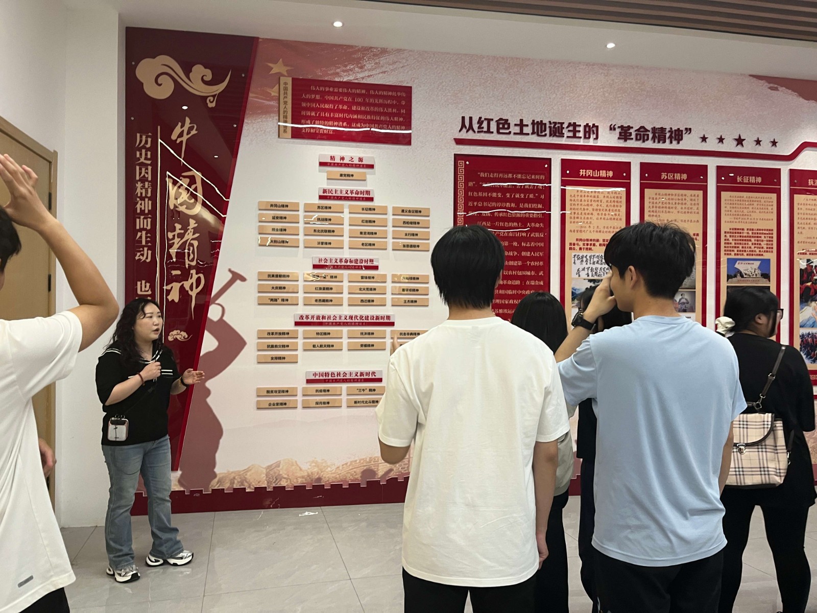 本次实践教学活动的一大创新亮点在于积极探索并实践了“一课多师”的教学模式。毛概教研室李秀金、黄林根、陈科艳、张晓珍、刘梦、巫锦明等七位教师在主任张绍国带领下组成教学团队,围绕“中国共产党人精神的时代价值与传承”这一核心主题,在教育馆的不同展区、针对不同内容,进行了分工合作与精彩讲解。