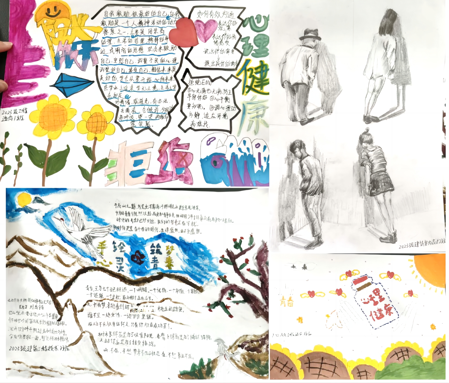各班开展“手绘心灵,筑梦青春”心理绘画活动。同学们结合自己对大学学习、生活的体验与感悟,从积极的视角出发,充分发挥想象力与创造力进行创作。通过绘画袒露心声、抒发情感,表达情绪,用积极的心态面对生活。