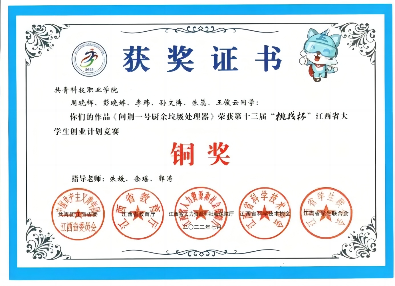 课余时间将专业知识运用到科创竞赛上,在多项赛事中取得好成绩,其中包括:第十三届“挑战杯”铜奖、“平安财萌杯”二等奖、“中国创翼”创新创业优秀奖、共青城市首届大学生创意创业大赛铜奖、财经素养大赛一等奖、模拟导游技能大赛二等奖等奖项。